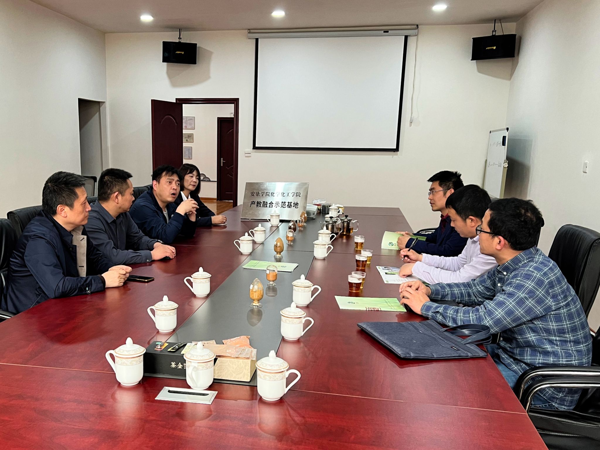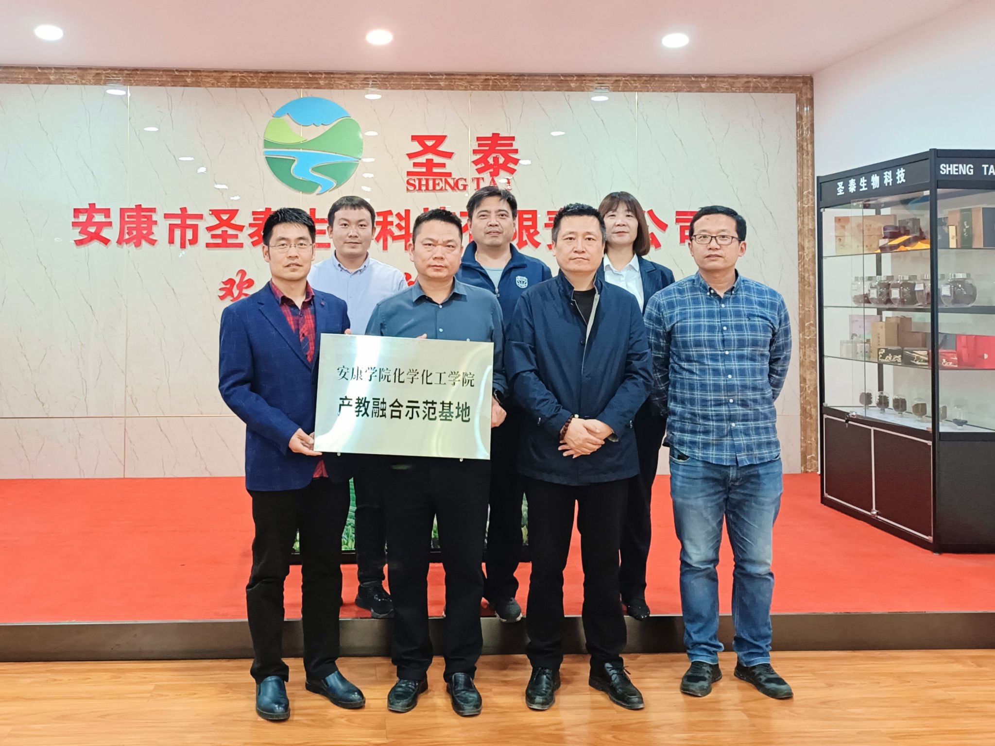 凝聚科技力量,助力产业发展,4月11日,化学化工学院党总支副书记、副院长袁光辉带领“化学赋能”科技团部分成员赴安康市圣泰生物科技有限公司进行科技服务对接活动,企业总经理宋兵出席活动。
