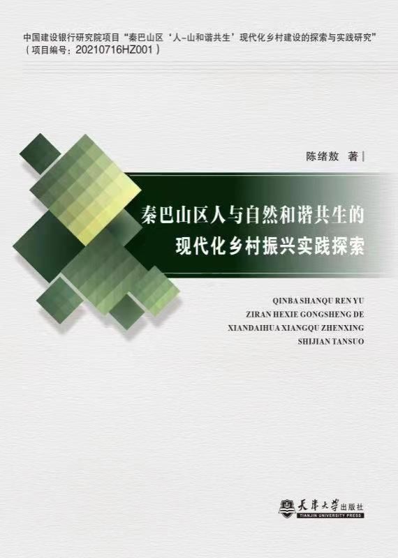 近日,威尼斯官网经管学院陈绪敖教授的著作《秦巴山区人与自然和谐共生的现代化乡村振兴实践探索》由天津大学出版社出版发行,该著作为中国建设银行研究院项目“秦巴山区‘人-山和谐共生’现代化乡村建设的探索与实践研究”的项目成果,全书28.7万字,由经管学院科研团队开展历时2年多的调查研究完成。