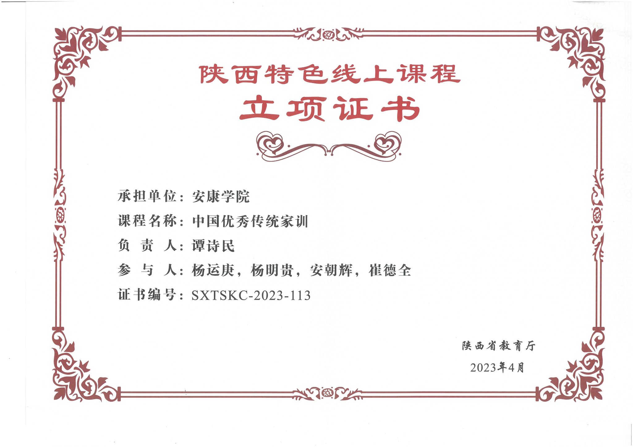 2022年11月,陕西省教育厅下发了《关于做好陕西特色线上课程立项建设工作的通知》,积极组织开展陕西特色线上课程遴选立项建设工作。经学校推荐、申报公示、专家评审等程序,最终于2023年4月批准135门课程为陕西特色线上课程立项建设。