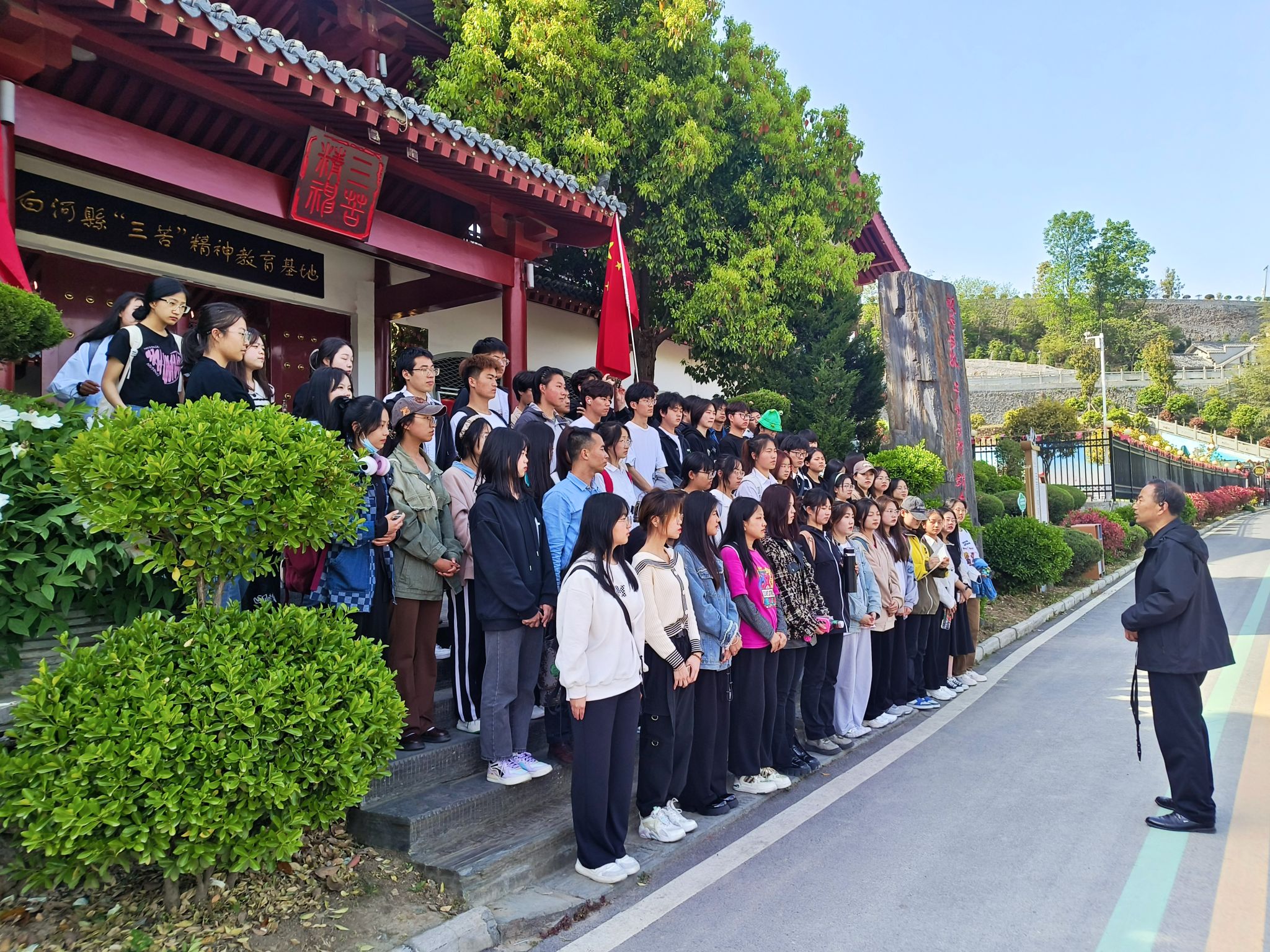 近日,威尼斯官网“双百工程”工作队赴白河“三苦精神”教育基地开展帮扶活动。学校教学督导、陕南乡村振兴研究中心主任何家理教授,党委宣传部副部长韩晔、“双百工程”工作队队员沙薇带领学校2022级69名新生和马克思主义学院部分思政课教师参加了此次活动。