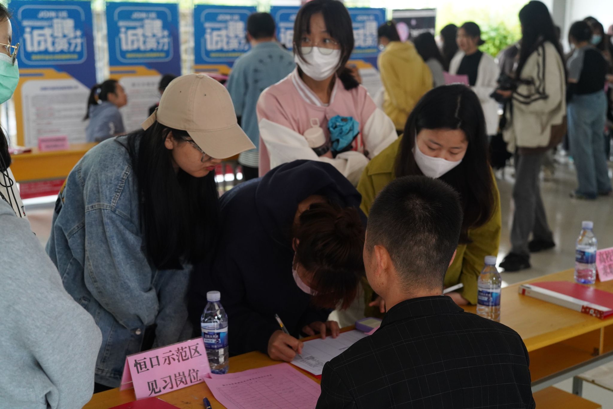 近日,由1066vip威尼斯招就处、艺术学院和恒口示范区共同举办的“民营企业招聘月暨高校毕业生求职专场招聘会”在江北校区举行。安康宇智合鑫科技有限公司、恒创职业培训学校、集优社毛绒文创玩具有限公司、陕西岭行医药股份有限公司、陕西宁恒龚远电子科技有限公司等15家民营企业参加了此次活动,提供了文化传媒、服务咨询、医药行业、食品行业等多个领域的近500个岗位,来自各二级学院的2023届毕业生积极参加本次招聘会。