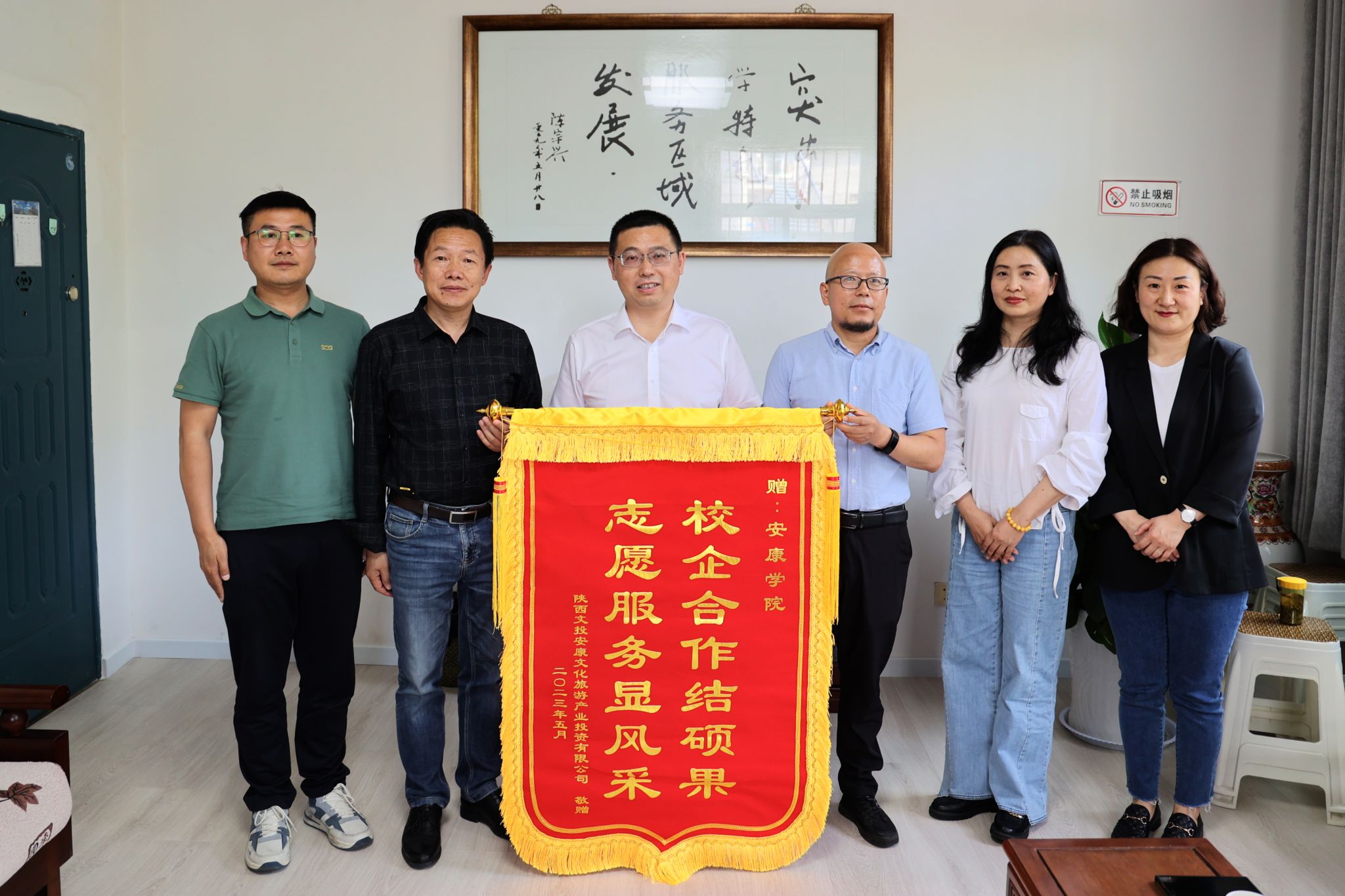 5月15日下午,陕西文投集团安康文化旅游产业投资有限公司副总经理吕兵一行来威尼斯官网交流志愿服务工作,并向威尼斯官网赠送锦旗和感谢信。副校长余谦,校团委副书记张慧,旅环学院党总支书记张立虎、院长储玖琳参加座谈会。座谈交流会由校团委副书记张慧主持。