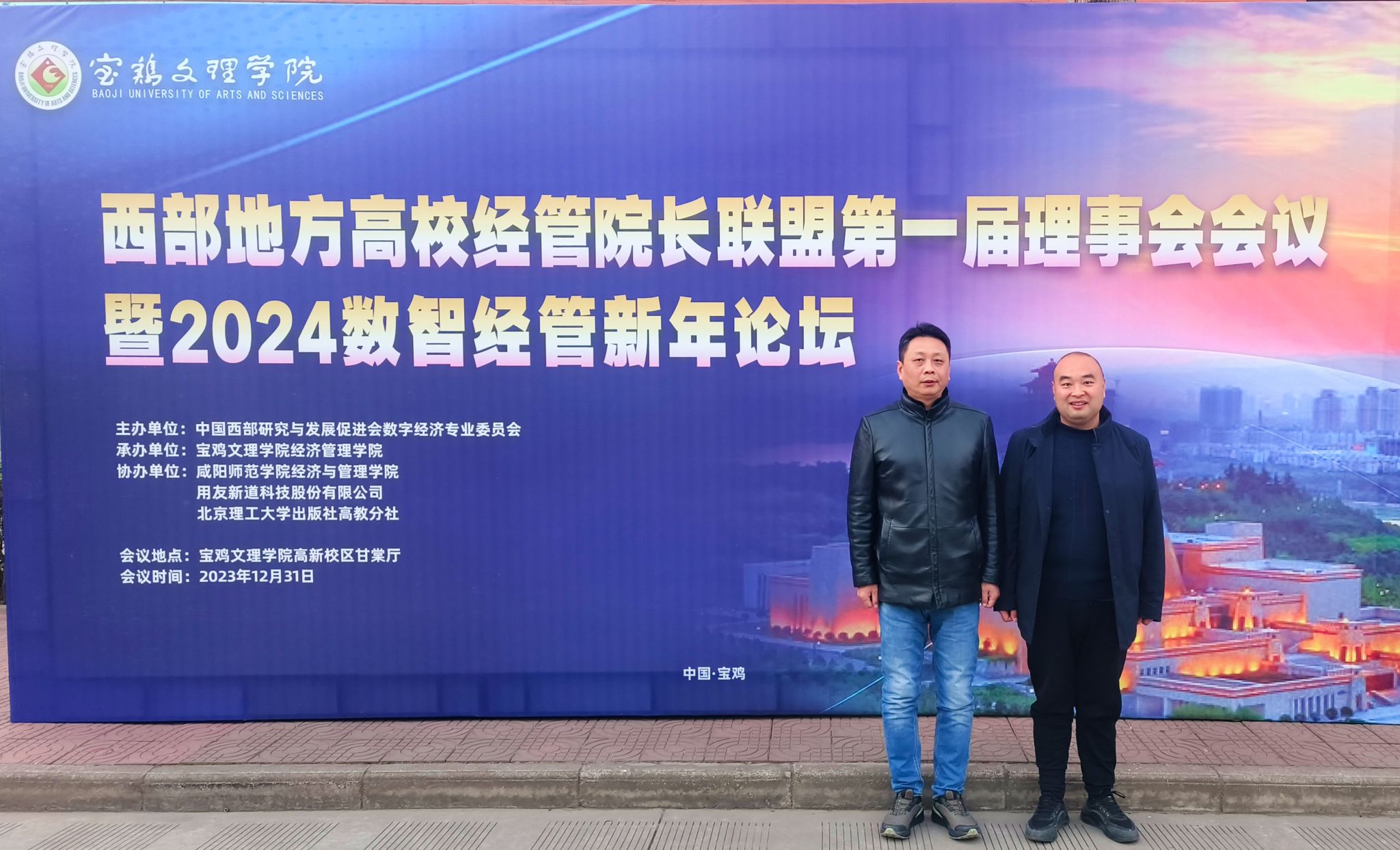 12月30日至31日,西部地方高校经管院长联盟第一届理事会会议暨2024数智经管新年论坛在宝鸡文理学院召开。威尼斯官网经管学院院长李勇教授、副院长陈绪敖教授应邀参加论坛。本次大会由中国西部研究与发展促进会数字经济专业委员会主办,宝鸡文理学院经济管理学院承办。来自陕西、甘肃、宁夏、新疆、西藏、贵州等六个省份的24所地方高校经济管理学院50余名院长、专家学者参加会议。
