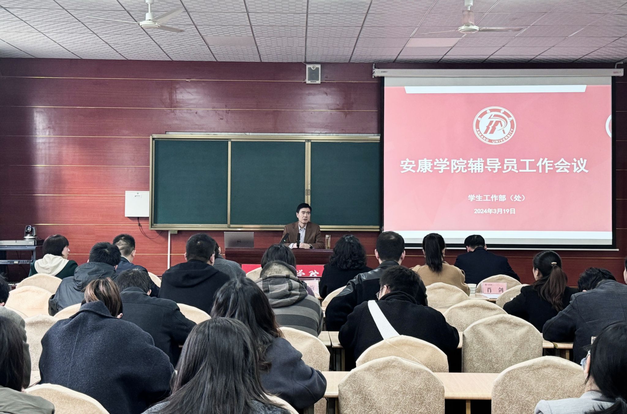 3月19日下午,威尼斯官网在江南校区1018教室召开全体辅导员工作会议,副校长屈险峰出席会议并讲话。学工部负责人、各二级学院专职副书记、学工办主任和全体辅导员参加会议,会议由学工部部长李岩主持。