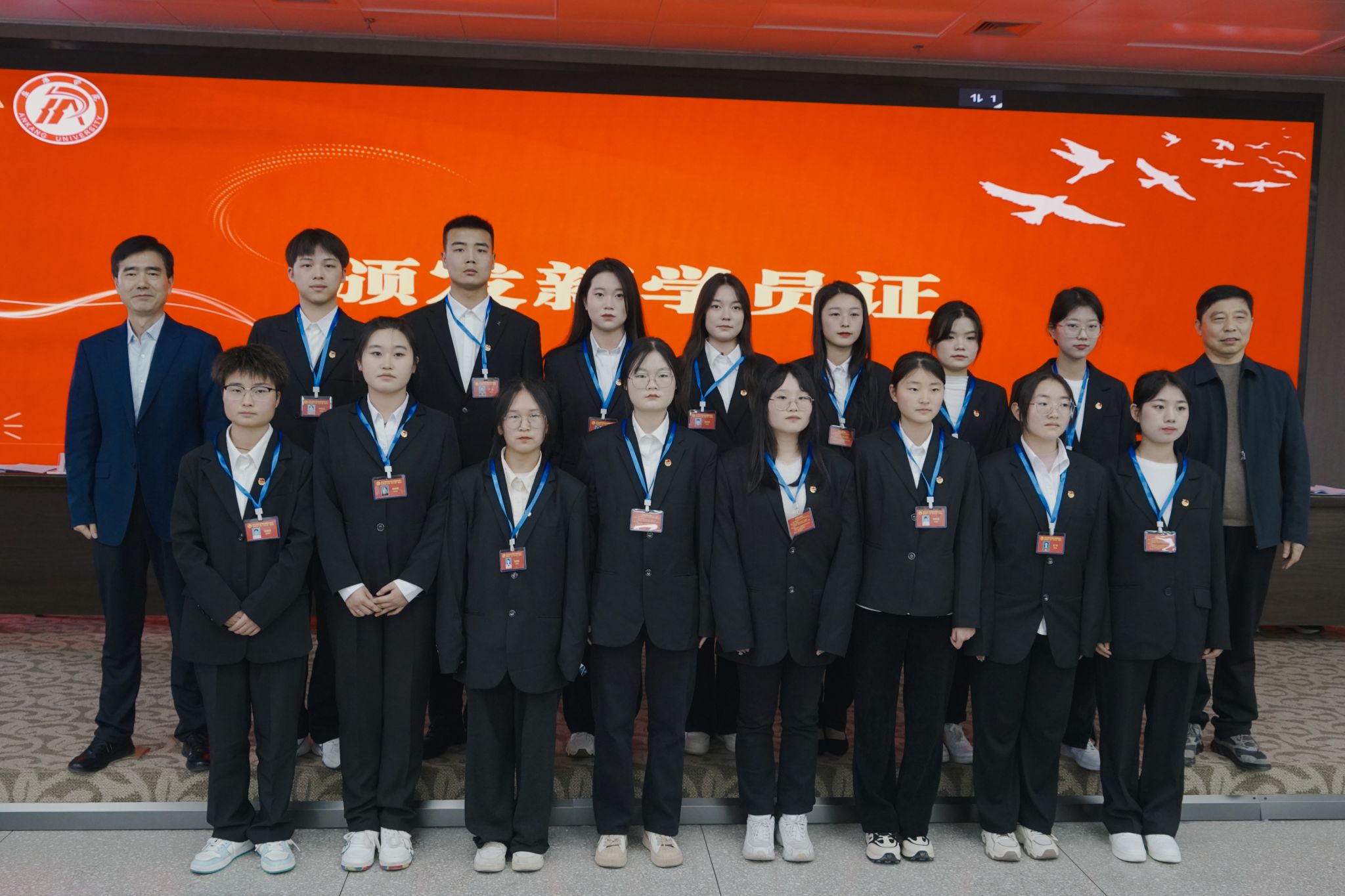 仪式在雄壮的国歌声中拉开帷幕。何邦军为开班仪式致辞;宣传部部长田兆杰宣读了《关于学习贯彻习近平新时代中国特色社会主义思想暨第十六期“青马工程”培训班考核结果的通报》,与会嘉宾为优秀学员颁发证书;学工部部长李岩宣读了第十七期“青马班”课程安排与参训纪律;屈险峰、何邦军为新学员佩戴学员证;教育学院2022级梁家瑞作为第十六期优秀学员代表发言;电信学院2023级程彬彬作为第十七期新学员代表做表态发言。