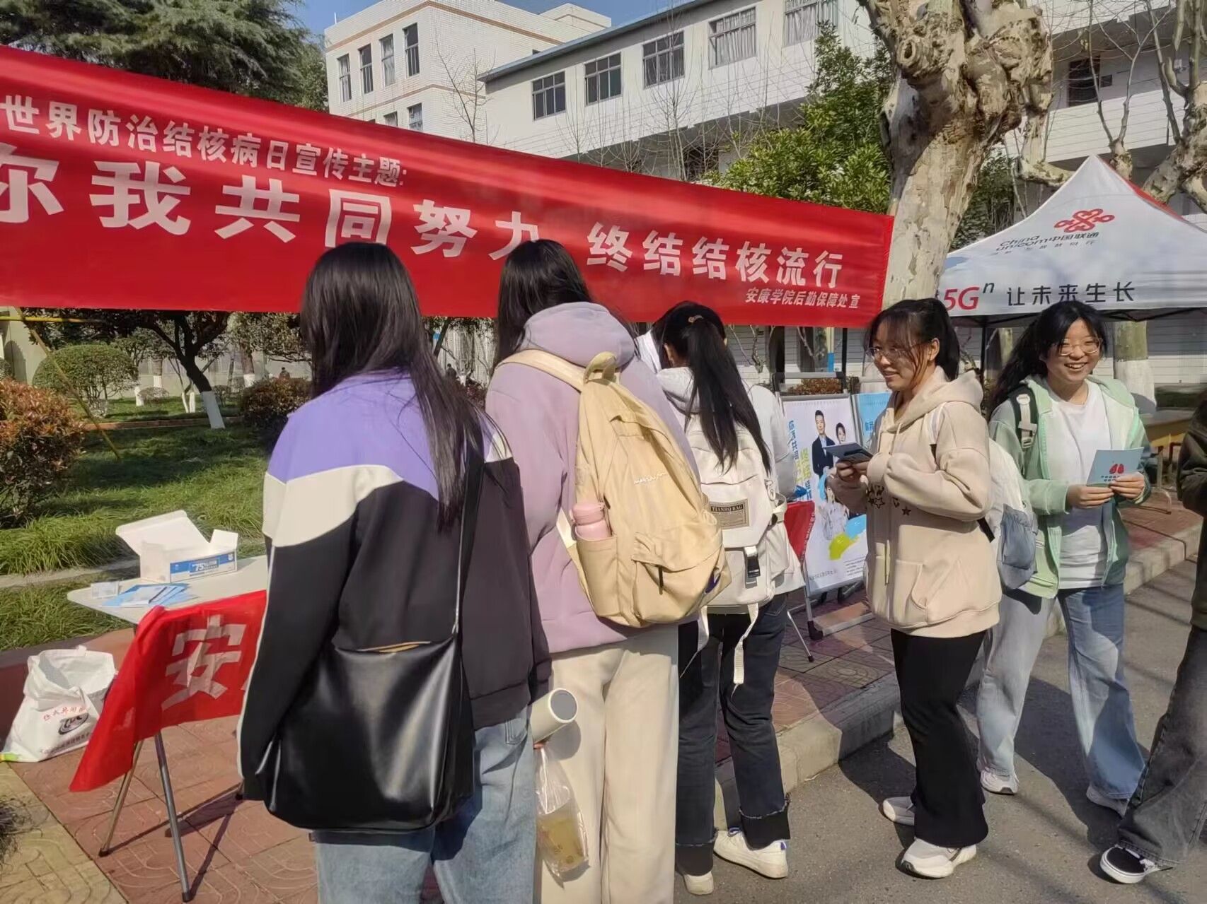 为了提高学校流行病预防控制水平,增强师生的防痨意识,近日,威尼斯官网联合安康市疾病预防控制中心、汉滨区疾病预防控制中心、新城社区卫生服务中心分别在江北、江南校区开展了以“你我共同努力 终结结核流行”为主题的世界防治结核病日宣传系列活动。