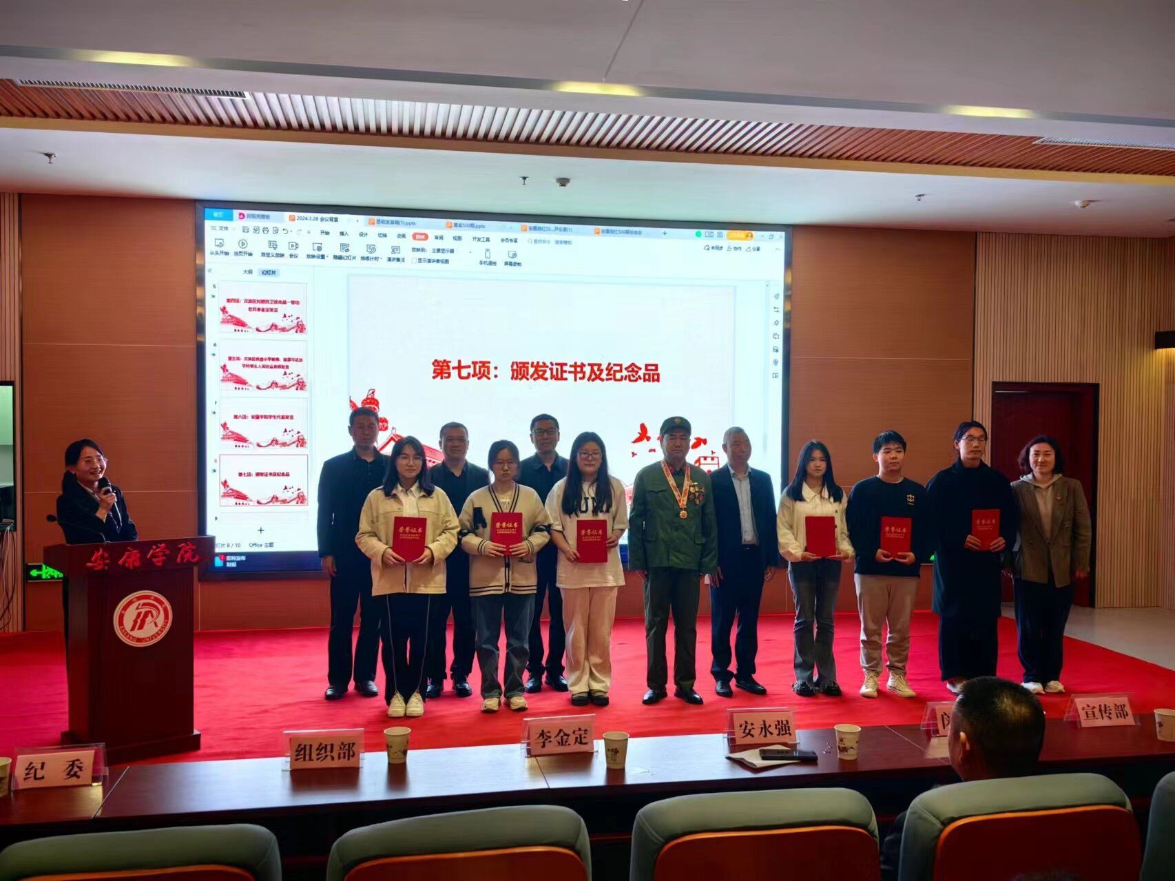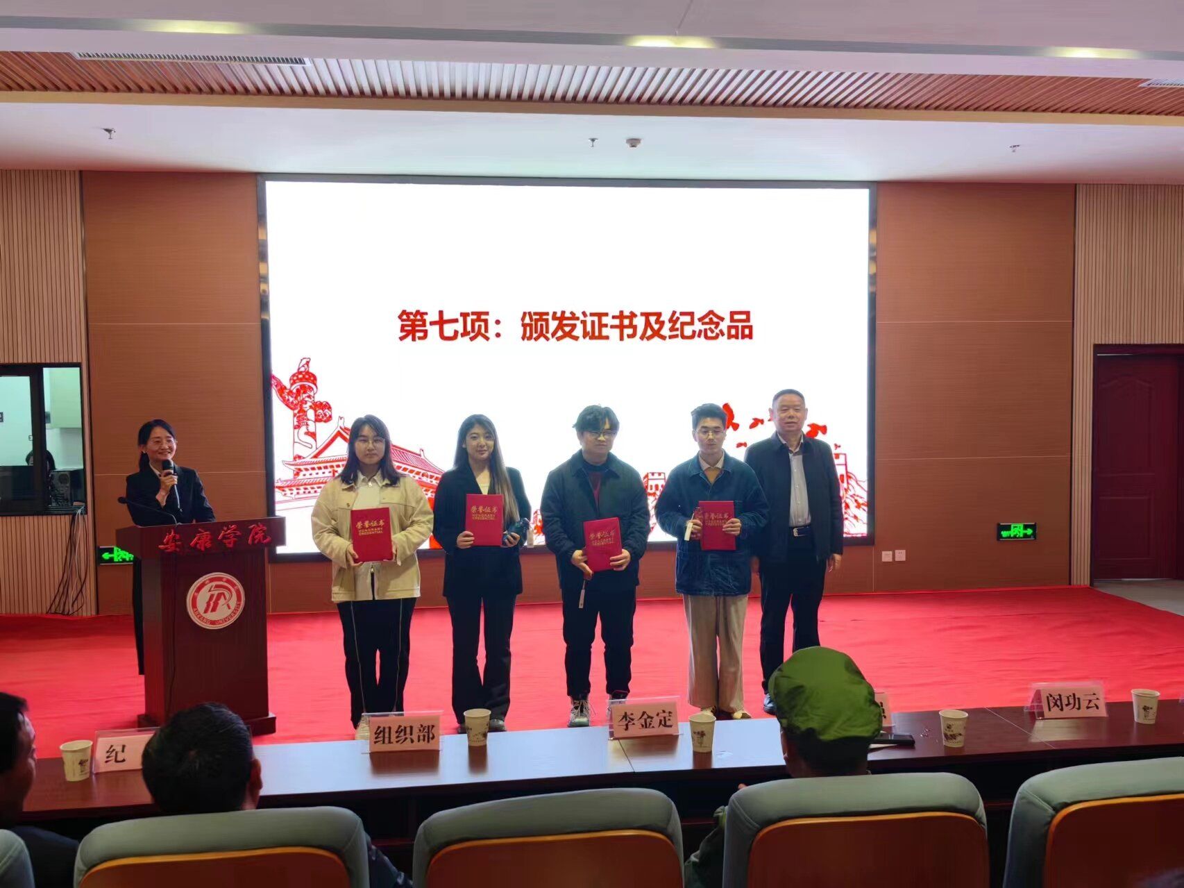 与会领导和来宾为“安康微红”推送团队及社团旗帜设计者颁发了证书和纪念品。