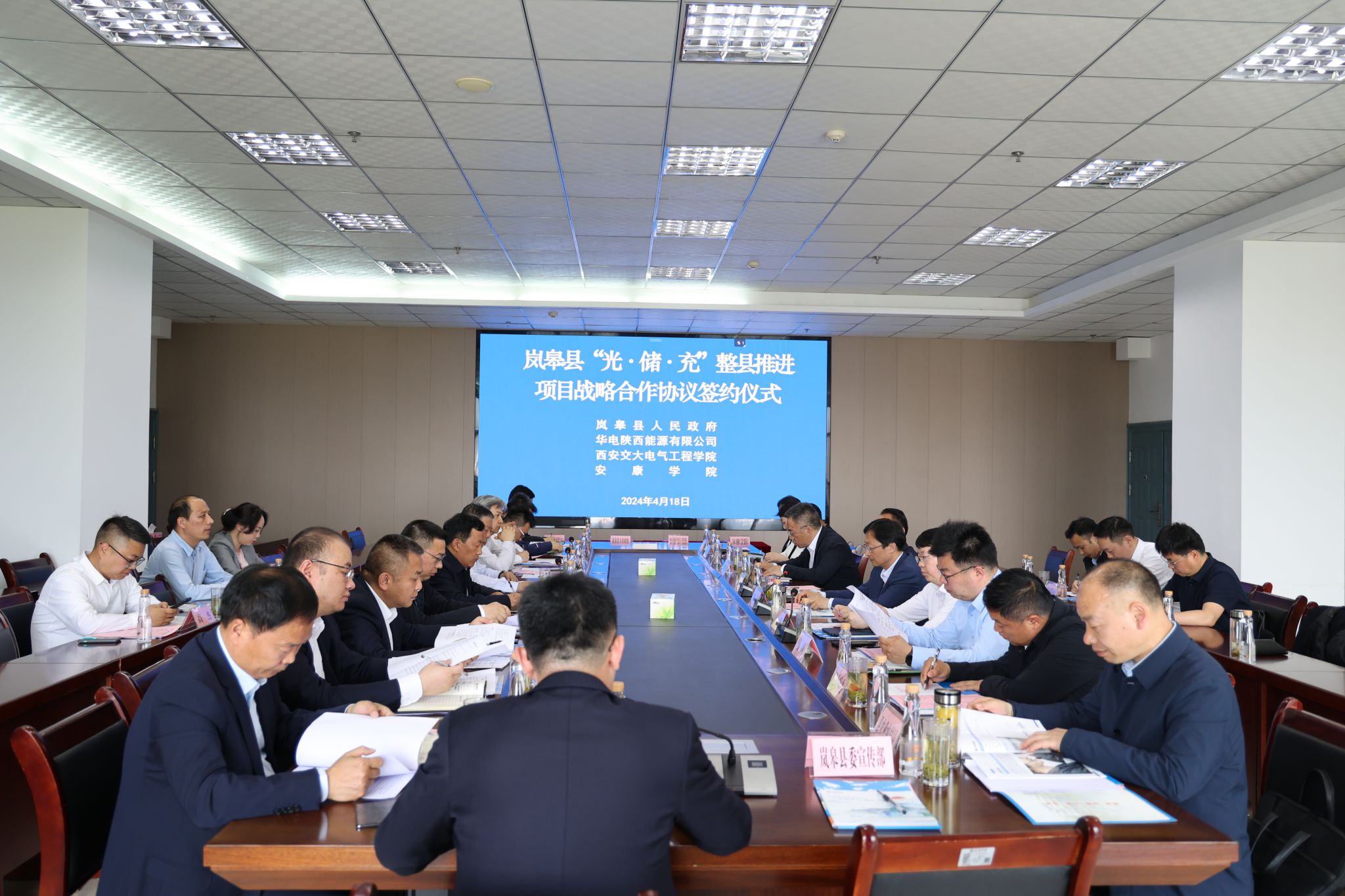 市科学技术局、市招商和经济合作局、市发改委、岚皋县相关职能部门、华电陕西能源有限公司、特变电工新疆新能源股份有限公司、长安银行安康分行、国网岚皋供电公司等单位负责同志,学校合作发展处、电子与信息工程学院负责人参加了会议。