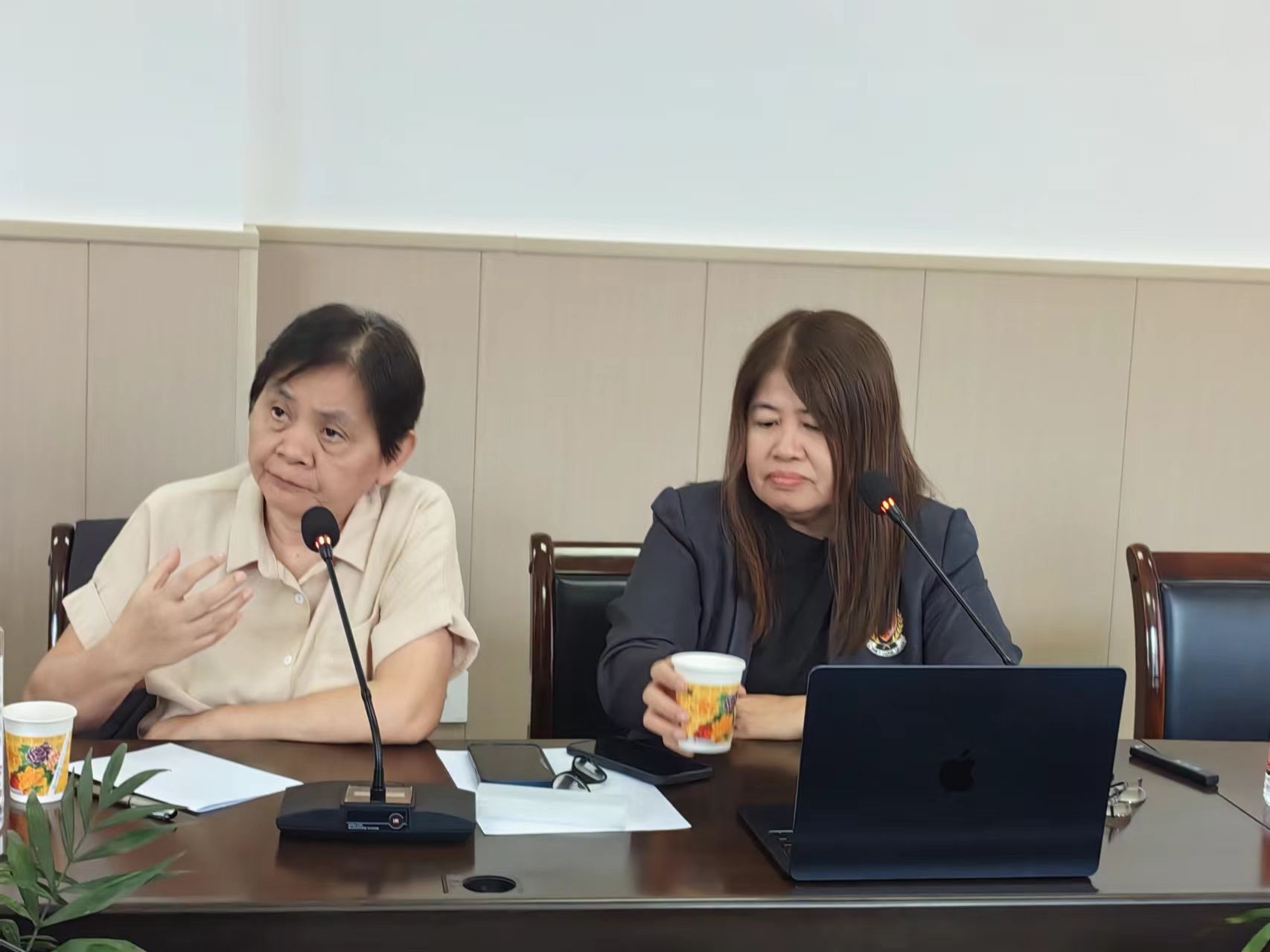 4月23日,应威尼斯官网外语学院邀请,来自菲律宾莱西姆大学人文与外语学院院长、博士生导师Marilyn L.Ngales教授和Leonora H. Astete博士在江南校区为外语学院全体教师做学术报告。报告会由副院长胡卫卫主持。